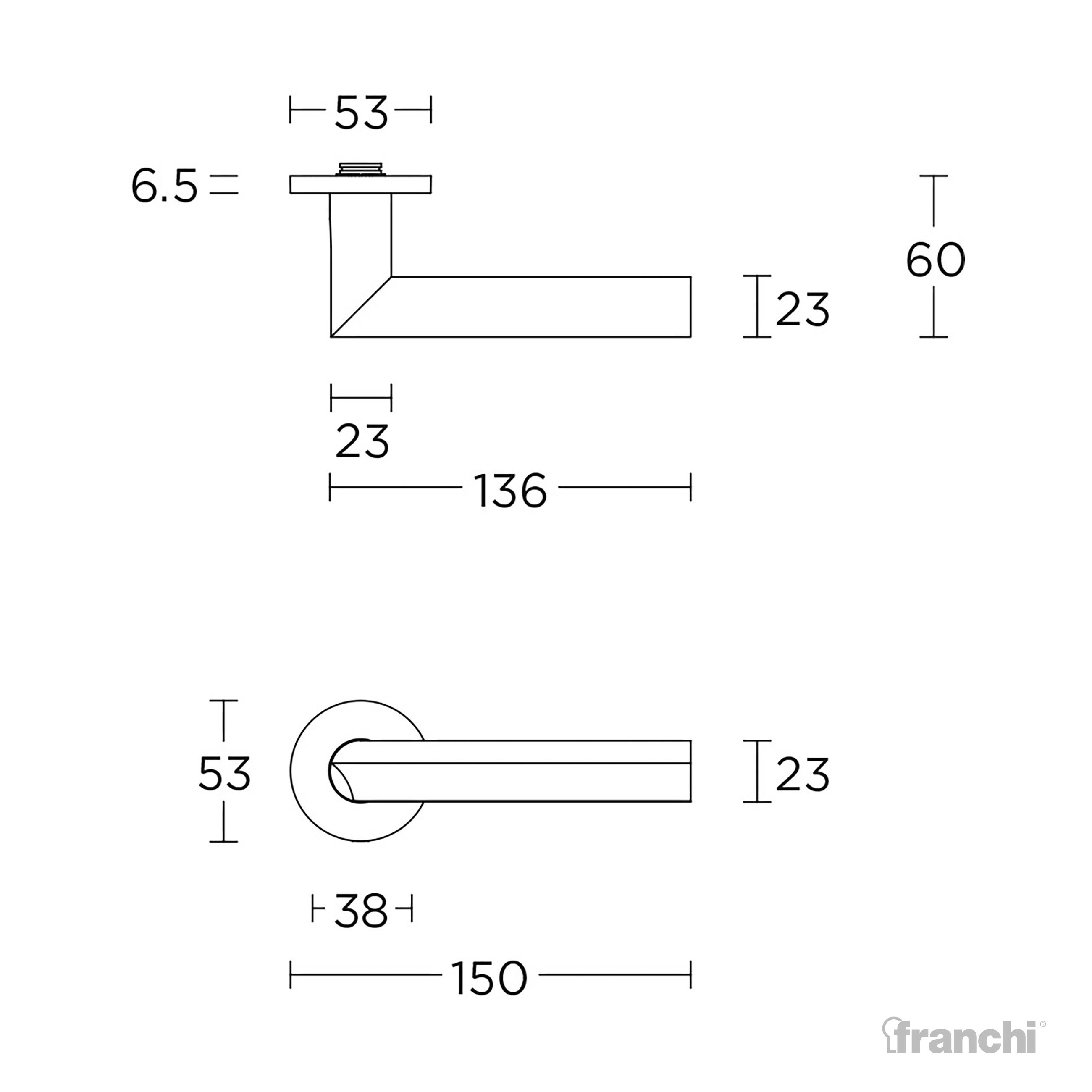 Available as standard on a sprung round rose, options include supplied with euro profile escutcheon, lever key escutcheon & WC & turn.